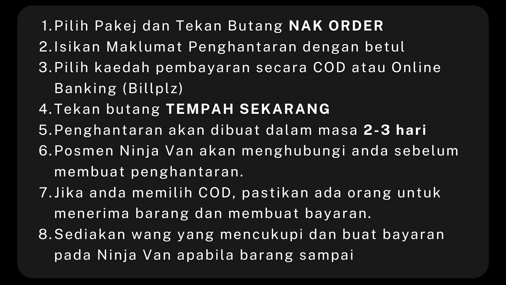 Boleh, kami ada “Moneyback Guarantee” tertakluk pada terma dan syarat yang jelas membuktikan penggunaan tidak memberi apa2 kesan pada kenderaan selama tempoh penggunaan 30 hari.