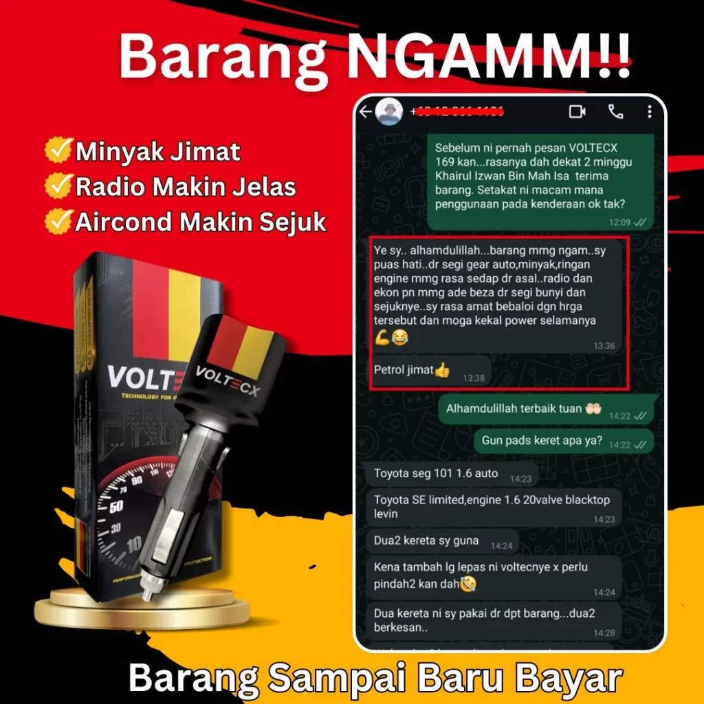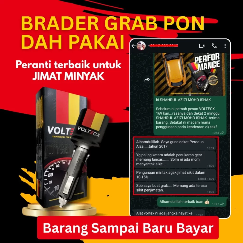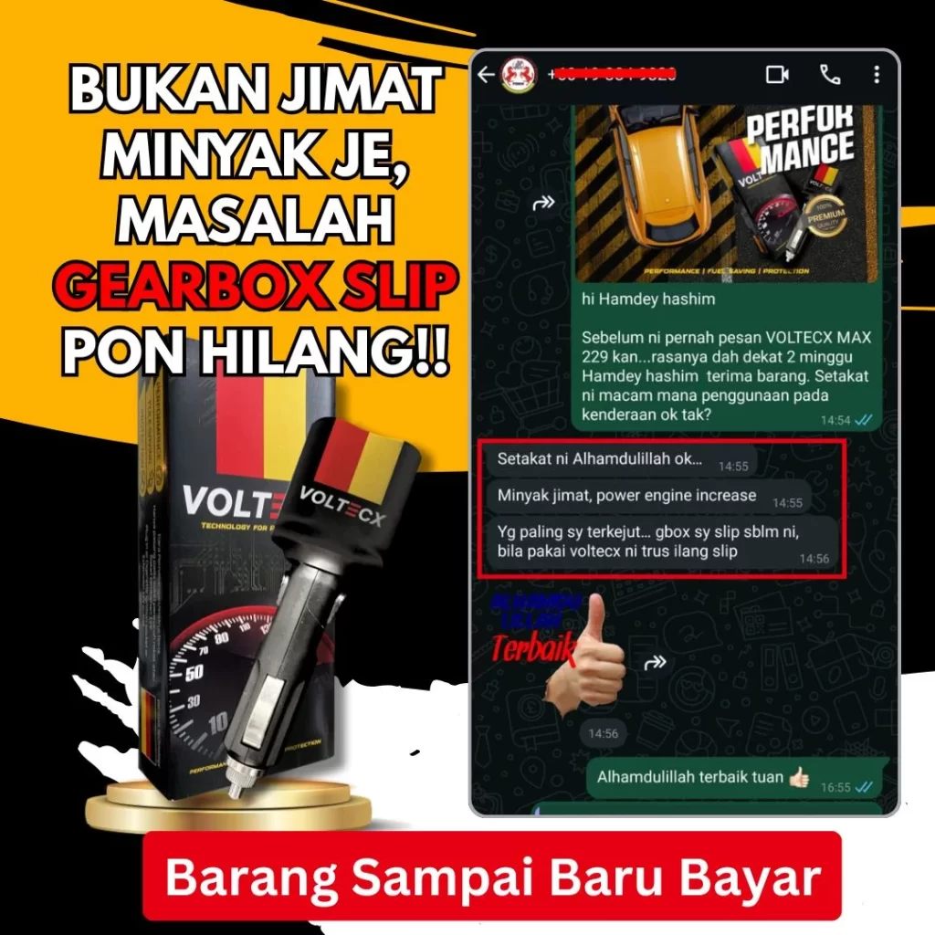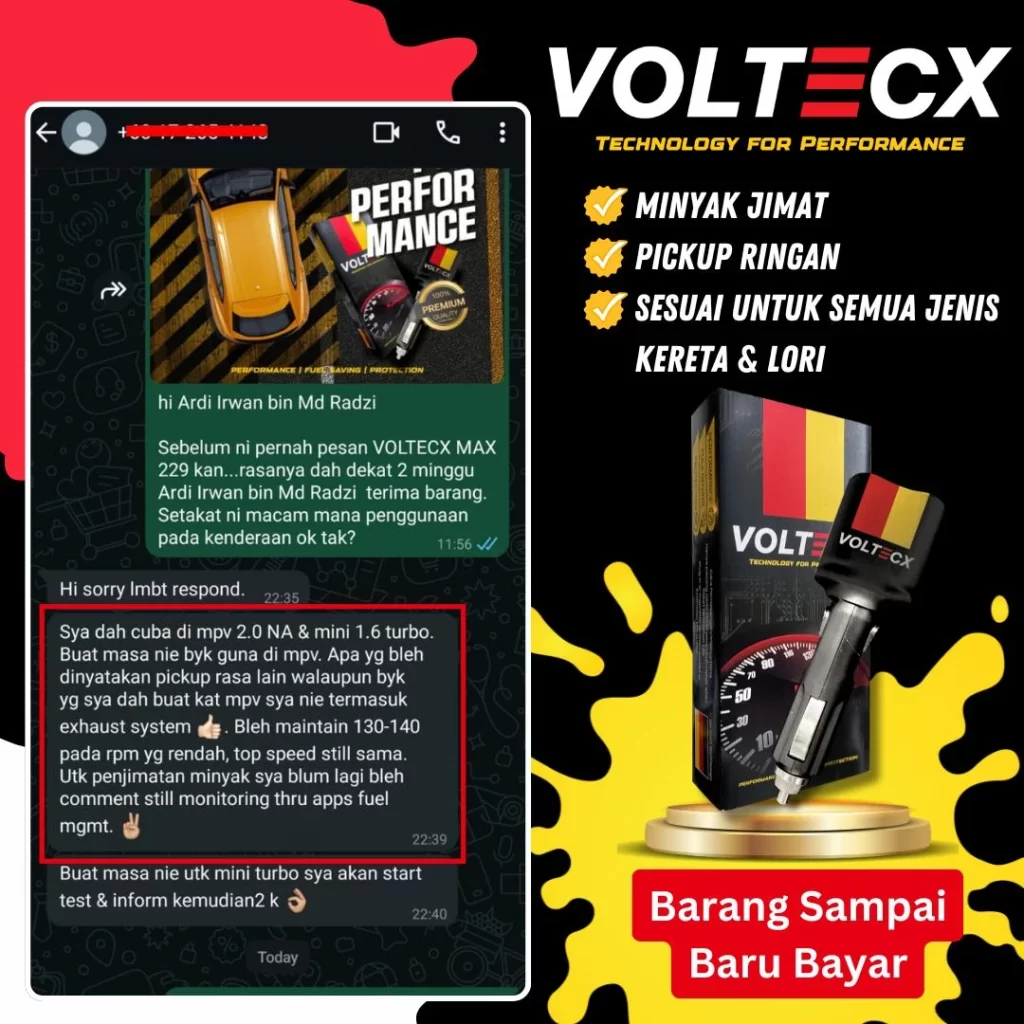 Voltecx berbeza dengan produk yang pernah ada di pasaran sebelum ini. Dengan real feedback dari pengguna jelas terbukti Voltecx memberikan kesan positif pada prestasi kenderaan.