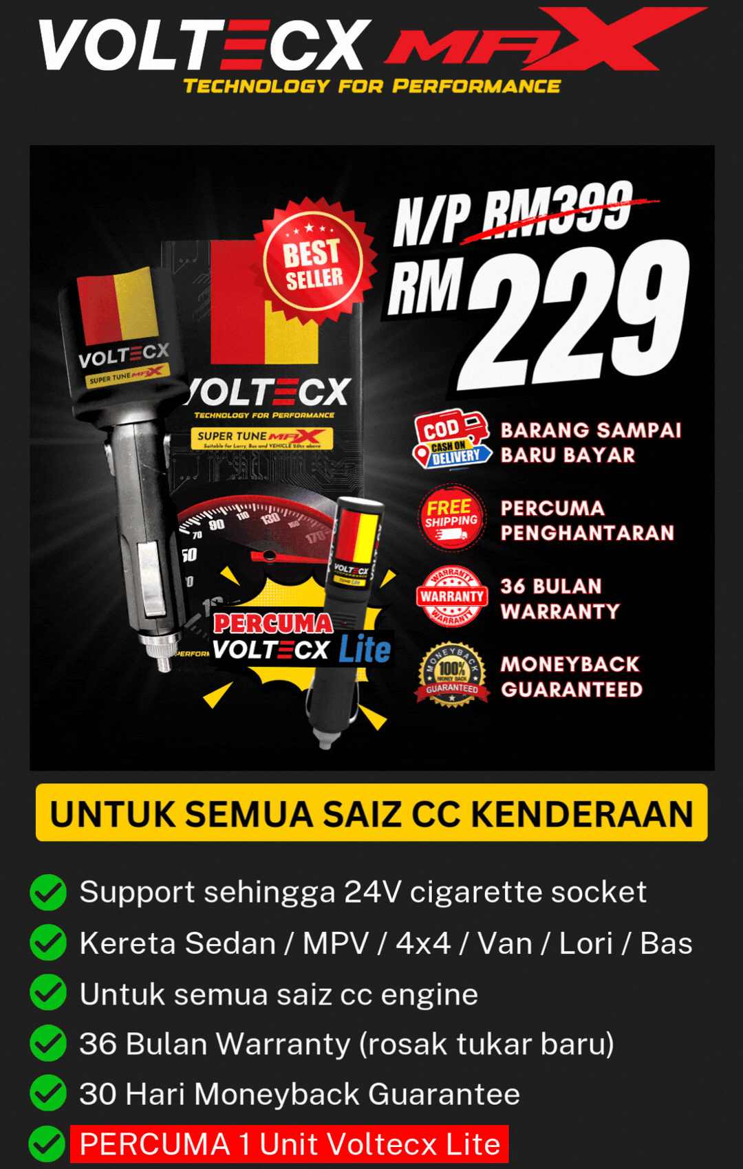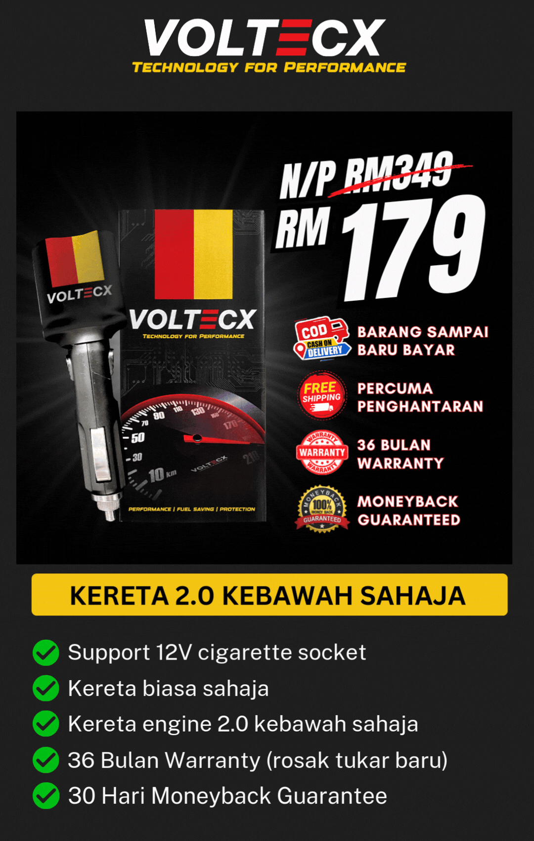 Voltecx sesuai digunakan untuk semua jenis kenderaan termasuk lori dan bas kecuali kenderaan EV/Hybrid