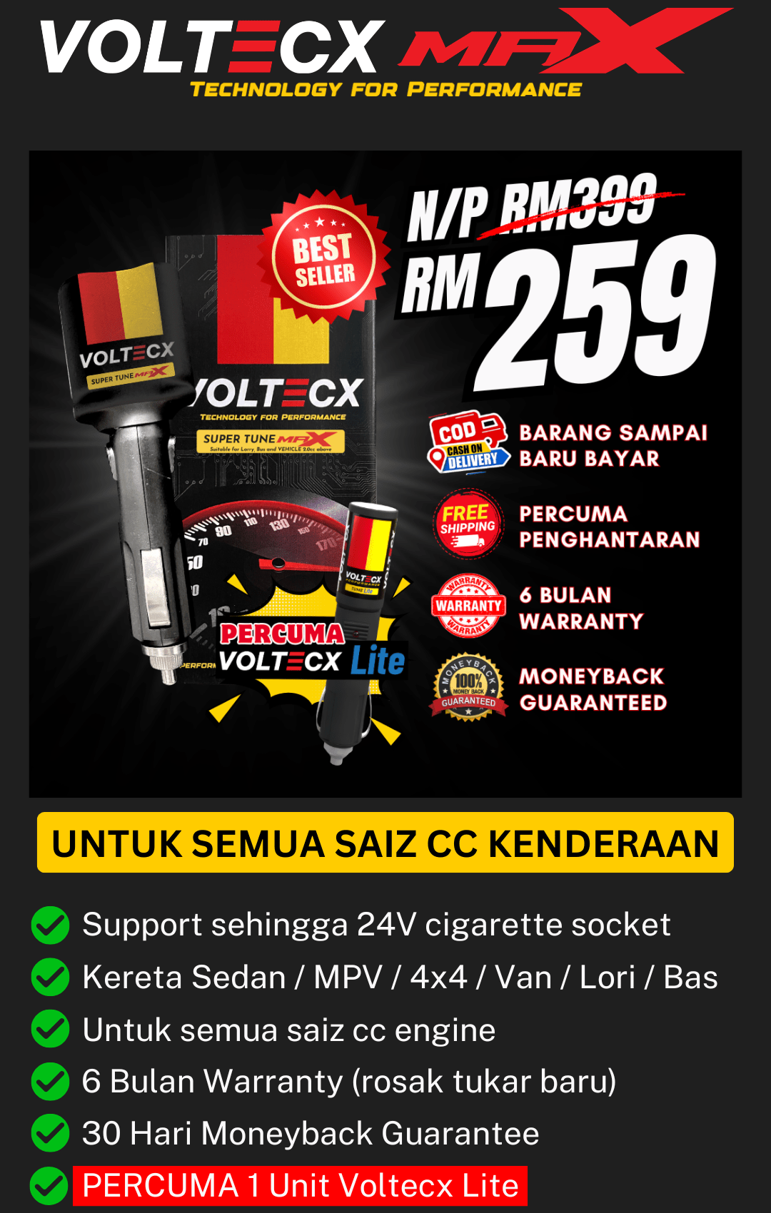 Sebelum matikan enjin kereta, cabut Voltecx dan simpan dengan baik bagi menjaga jangka hayat ketahanan.