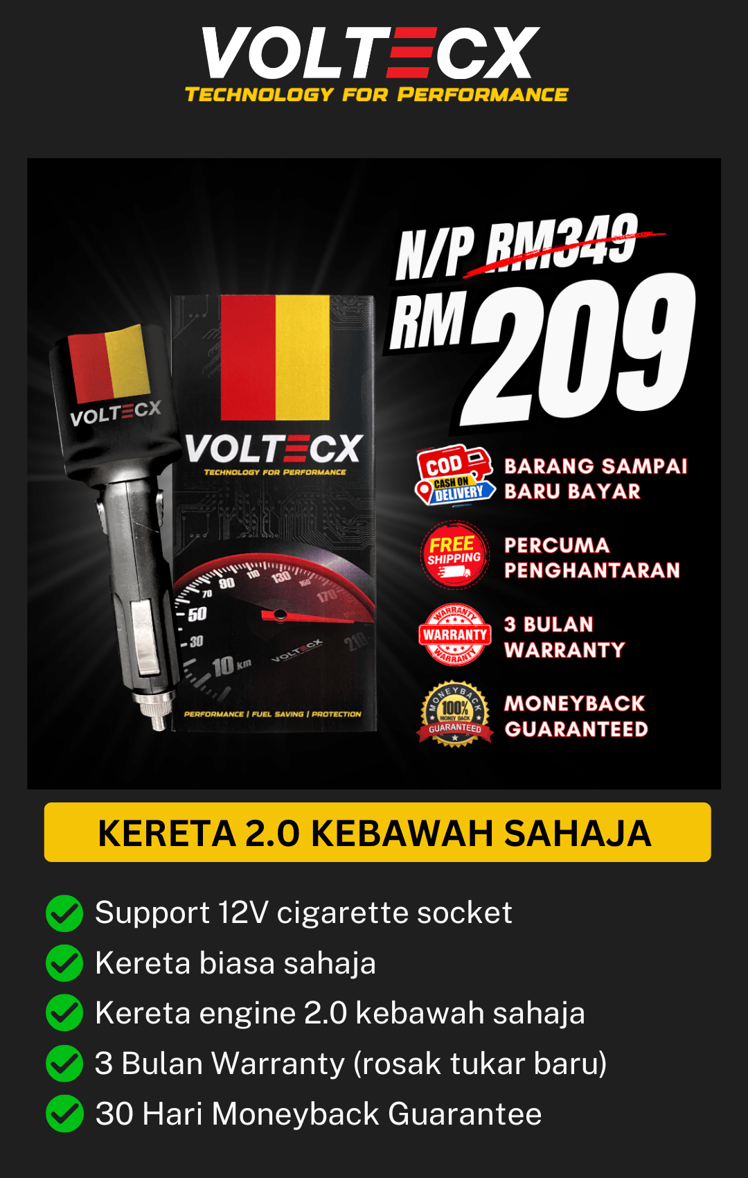 Voltecx sesuai digunakan untuk semua jenis kenderaan termasuk lori dan bas kecuali kenderaan EV/Hybrid. Kesan lebih terasa pada kenderaan yang sudah berusia lebih 3 tahun.