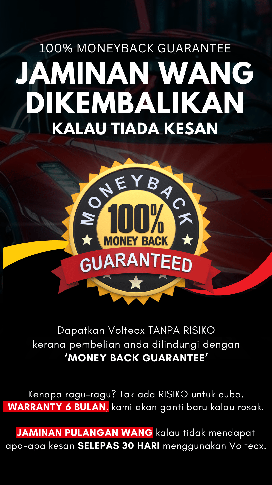 Jangka hayat ketahanan Voltecx minimum 3 tahun atau 90,000km mileage. Warranty selama 6 bulan (Jika rosak, boleh hubungi kami untuk proses penukaran yang baru)